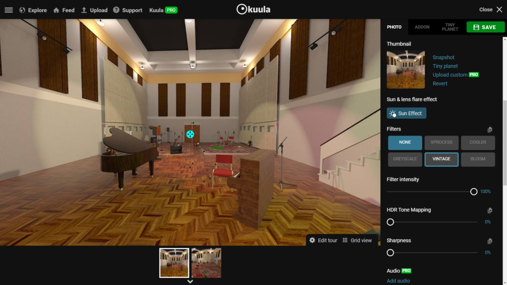 My first concern about Kuula is that it will disappear any minute! The UI design is clunky and old-fashioned (intuitively). Like DriftSpace, it doesn’t make me feel confident about relying on it – partly because the results are hosted on Kuula’s servers and partly because I’ve seen other, similar tools disappear.